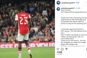 體育資訊9月5日訊 25歲的比利時中場洛孔加已經官宣加盟漢堡,他也在今日通過社媒發文告別阿森納: