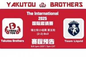 體育資訊9月6日訊 TI14瑞士輪今天繼續進行!2-2輪次中,中國隊Yakutou Brothers對上Liquid!
