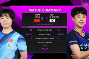 WTT蒙彼利埃冠軍賽女單1/16決賽:蒯曼2比3不敵金娜英 止步首輪