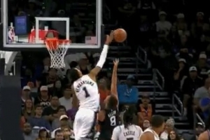 遮天蔽日!格雷森-阿倫強攻上籃 文班亞馬大帽扇出界外