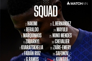 體育資訊9月21日訊 北京時間明天凌晨2點45分,巴黎將在法甲第5輪比賽中客場對陣馬賽,巴黎公布了此役的球員名單。登貝萊、杜埃、若奧-內維斯、巴爾科拉因傷缺席。