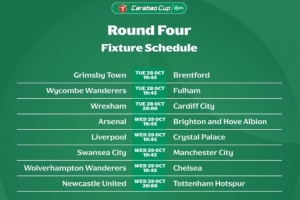 體育資訊9月29日訊 聯賽杯官方公布第四輪時間,阿森納vs布萊頓、利物浦vs水晶宮將于北京時間10月30日周四03:45進行。