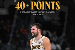 湖人官方:東契奇開季連續(xù)三場40+得分!上一位做到的是張伯倫!
