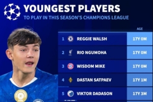 有望本賽季參加歐冠比賽最年輕球員:恩古莫哈、倫哈特-卡爾在列