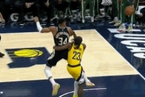 動作有點大!字母哥反擊被內史密斯放倒 后者被吹一級惡意犯規
