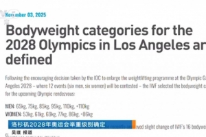 洛杉磯奧運會舉重級別確定,男、女各6個小項,產生12枚金牌