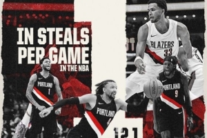 五小陣容!開拓者曬數據海報:場均12.1次搶斷!聯盟第一!